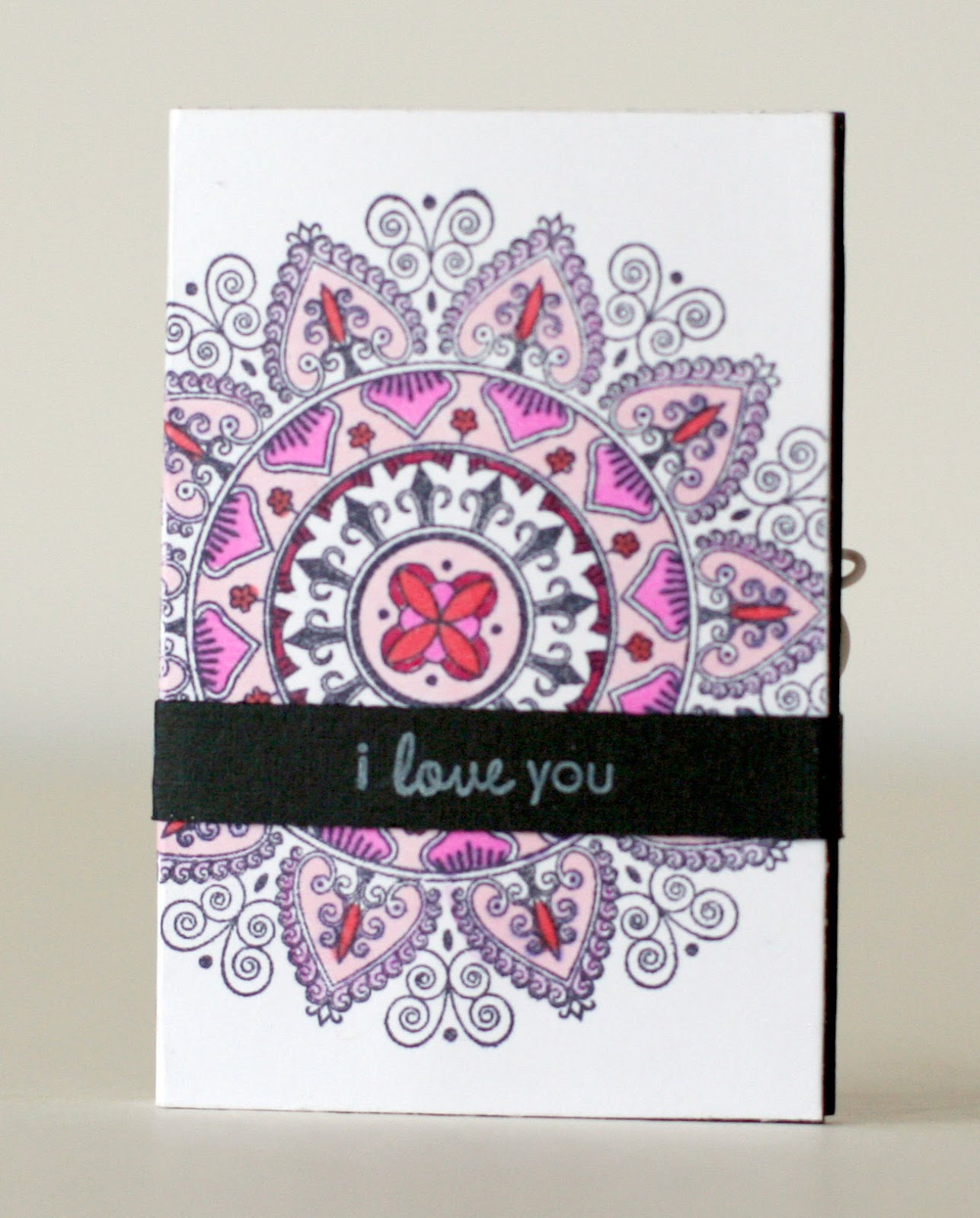 Here's a matchbox-sized Valentine's Day mini with a colored Mehndi Medallion on the cover. Love that set from Papertrey. Such a value for only $5. You could color this a million different ways and get a new look each time.