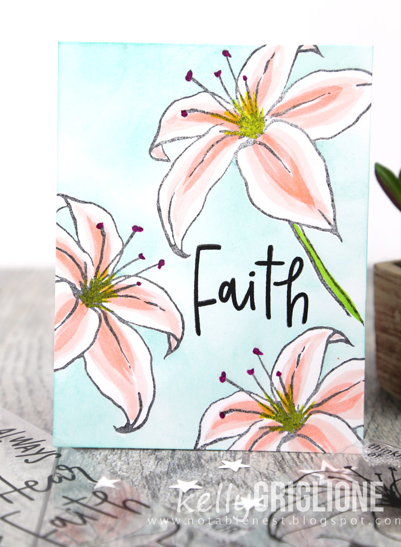 Faith and Love set before embossing it so there wouldn't be gaps in the ink. Then I cut the panel on an angle and attached it to the card base.