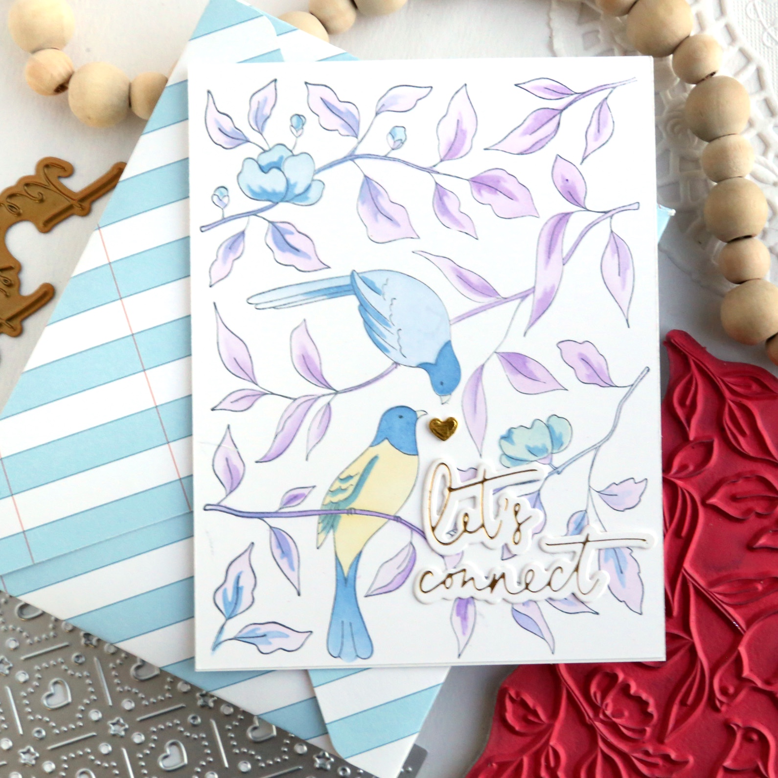 The only thing "extra" is did was try to expand on the foiled sentiment of Let's Connect with a tiny foiled heart in between the birds.